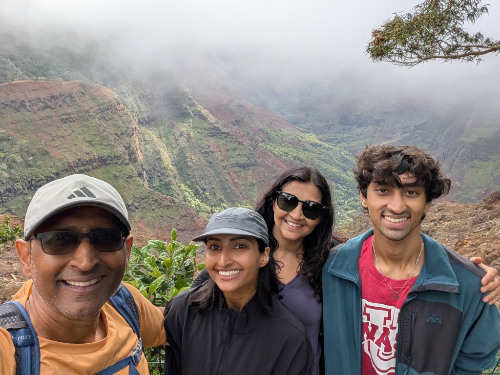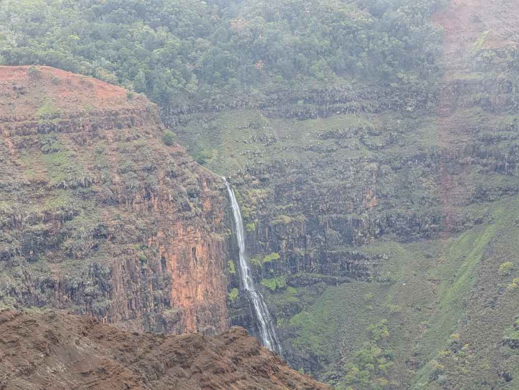 A view of the majestic Waipo’o Falls cascading down the canyon walls. Mist and smiles at the Waimea Canyon rim.