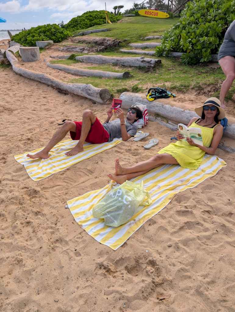 Next, we moved over to Poipu Beach, where the vibe was much calmer. We got our snorkel gear and explored the underwater world, spotting colorful fish darting around the reefs. After swimming, we set up camp at Poipu Beach Park. It was the definition of relaxation—laying on the warm sand, and just enjoying the company of family.