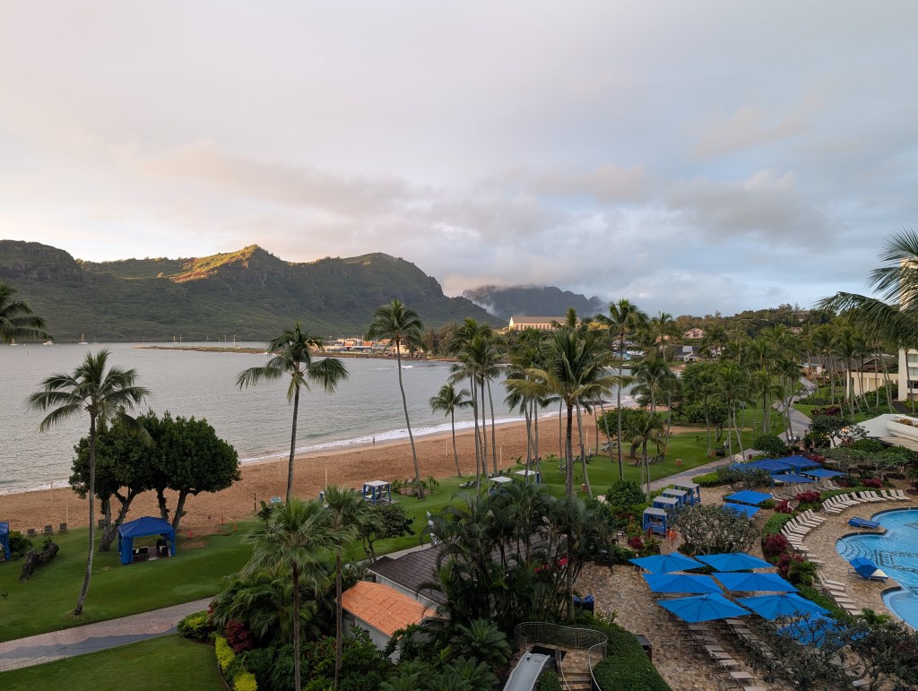 As evening approached, we checked into our hotel and were greeted by stunning views of the resort and Kalapaki Bay. The landscape was lush, and the atmosphere was instantly calming.