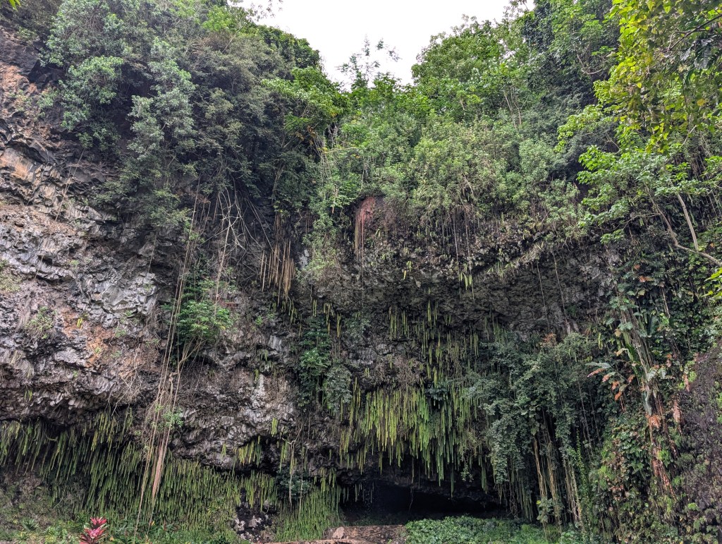 In the afternoon, we opted for a more relaxing pace with the Fern Grotto Boat Tour. We took a family-friendly cruise down the Wailua River, learning about local history and legends along the way. The destination—a natural lava rock grotto draped in lush, hanging ferns—was like something out of a fairytale.