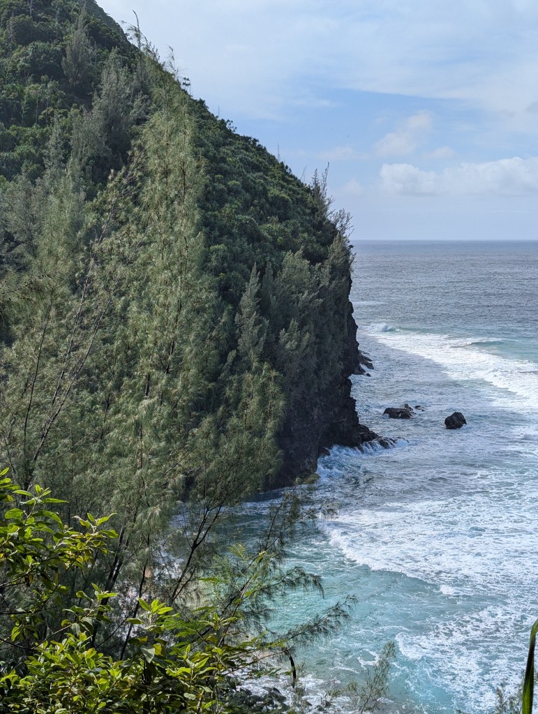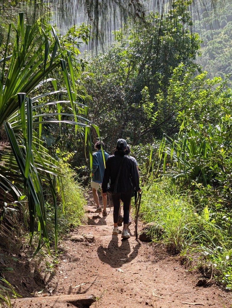 The highlight of the day was hiking the first section of the legendary Kalalau Trailhead. We opted for the “short version,” a 4-mile round-trip trek to Hanakāpī‘ai Beach. The trail provided breathtaking views of the emerald-green cliffs plunging into the turquoise Pacific. While the path can be steep and rocky, reaching the secluded beach—framed by towering rock formations and the crashing surf—was a truly spiritual experience.